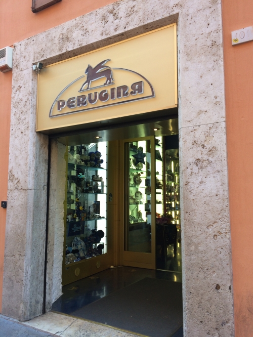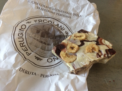 銀色の包み紙に青い星がトレードマークのバーチチョコ。このチョコを作っているペルジーナ社は、ここペルージャで生まれました。そのためチョコをこよなく愛するイタリア人たちにはチョコレートの街として知られています。