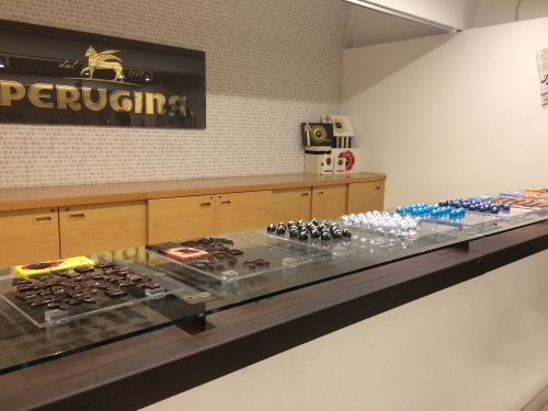 そしてもちろん、ペルージャが誇るバーチチョコで有名なPERUGINA(ペルジーナ)の直営店もあります。バーチチョコだけでなく、ジャンドゥイオットや板チョコなどいろんな商品が並んでいます。