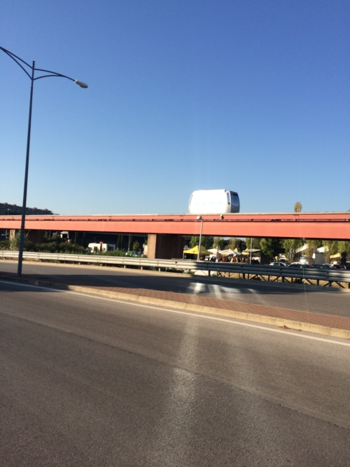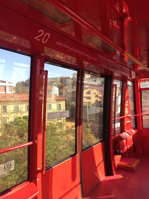 ペルージャの駅から旧市街地までは路線バス、もしくはミニメトロで行くことができます。ミニメトロは一両編成の無人ケーブルカーで数分間隔で走っていて、まるで遊園地のアトラクションのようです。ぜひお試しください。