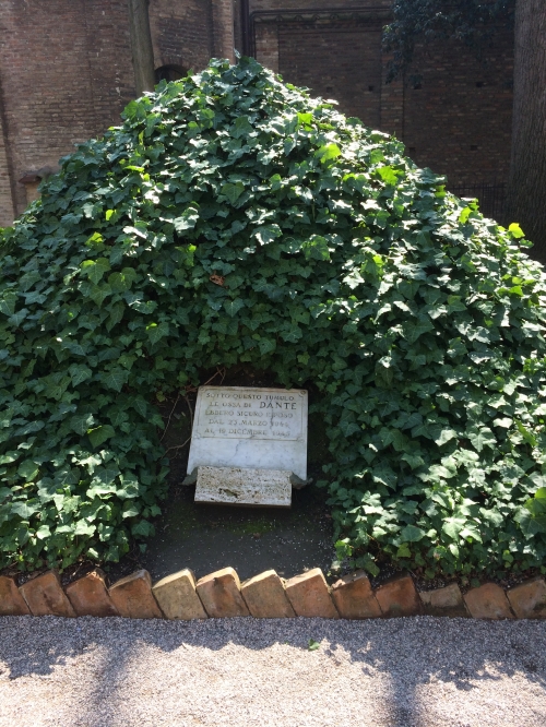 街の中心部にはダンテのお墓があります。小さな墓所の隣にはこんもりと緑に覆われた塚があり、第二次世界大戦中、戦火を逃れるためこの塚にダンテの遺骨が埋められていたそうです。