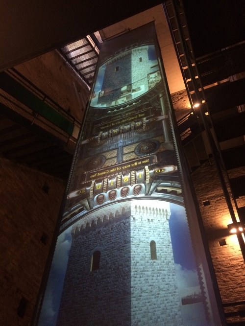 塔の中心には上から下まで長いスクリーンが吊り下げられ、階段を登る間もスクリーンに映る映像を楽しみながら登ることができます。屋上からのパノラマは街の四方を遠くまで見渡すことができ、情緒あふれる風景が目の前に広がります。