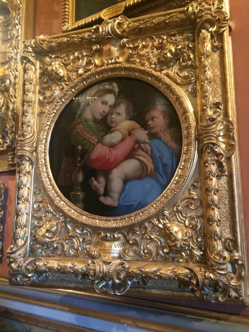 パラティーナ美術館はピッティ宮殿内にある美術館の一つで、最も有名な美術館です。実はこの美術館、ウフィッツィ美術館に負けず劣らずの素晴らしい美術作品が展示されています。また、作品だけでなく部屋自体にも豪華な装飾が施されていて、目がチカチカするほどの金ピカの部屋などもあります。