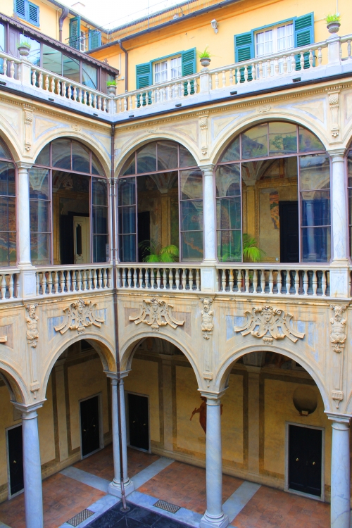 ジェノヴァ観光の見どころの一つは、旧市街にある「ストラーデ・ヌオーヴェ(Strade nuove = 複数の新しい通り)」と、それらの通りにある「パラッツィ・デイ・ロッリ(Palazzi dei Rolli)」と呼ばれる大邸宅群。建築的にも価値あるものが多く建っていることから、2006年にユネスコ世界文化遺産として登録されました。
