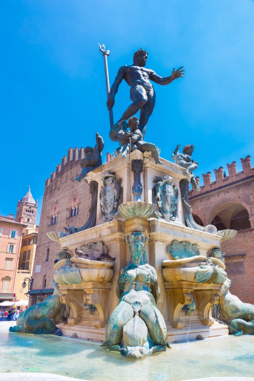 欧州一古いボローニャ大学がある学芸都市として有名なのが、エミリア・ロマーニャ州の州都である「ボローニャ」。街のシンボルとも言える「ポルティコ」とよばれる柱廊アーケードが有名なほか、16世紀の最も美しい噴水のひとつと言われる「ネプチューンの噴水」やサン・ペトロニオ教会がある「マッジョーレ広場」、「サント・ステファノ教会群」などが主な観光スポットとなっており、重厚な中世の街並みで観光客を魅了しています。