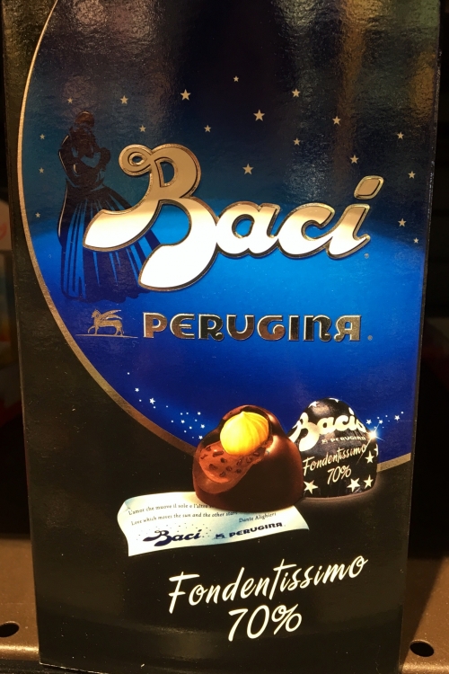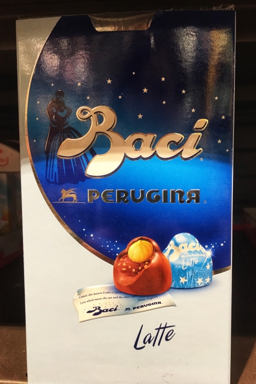 イタリアのお土産として有名な、ペルジーナ社のチョコレートBaci。Baciとはイタリア語でキスの複数形のことです。チョコレートの包み紙に愛のメッセージが書かれています。