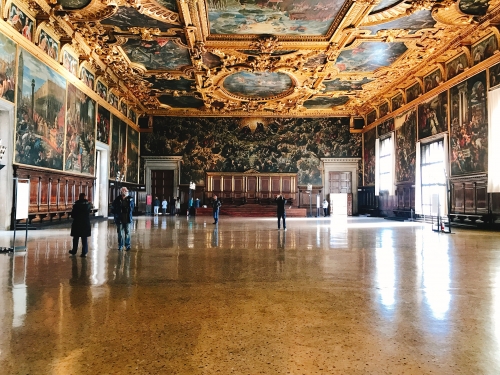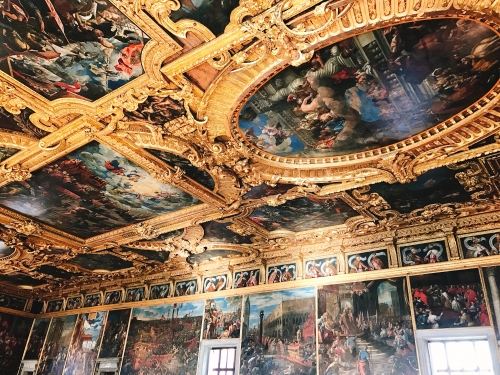建物の中は豪華な作りをしており、当時のヴェネチア総督の権力の強さを感じます。中でも大評議の間にあるティントレットの『天国』は世界最大の油絵といわれています。その迫力に圧倒されるはずです。