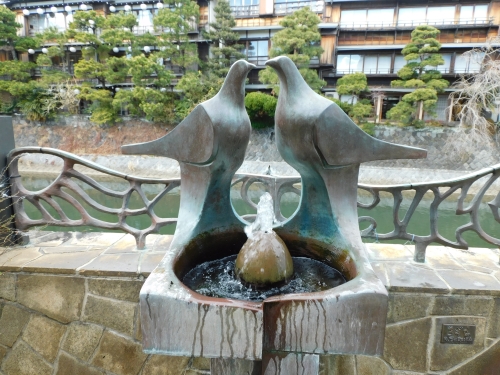 湯の花通りにある七福人の石像にお湯をかけると願いが叶うとされており、願いを書く「願い紙(神)」は、商店街の加盟店舗で無料で配布されています。