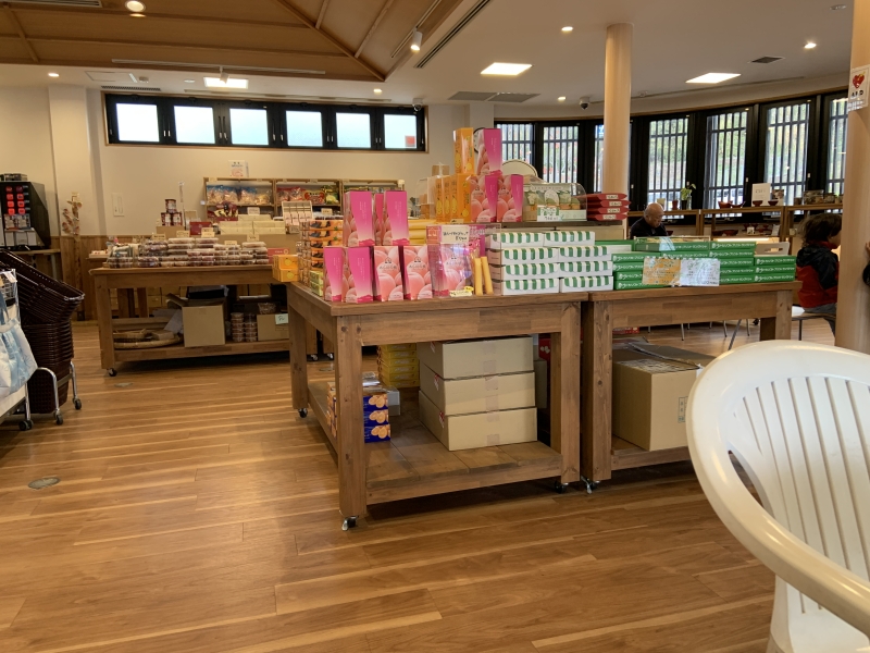 北側にある建物「花笑み館」には、地元岩出市や和歌山県のお土産物が販売されています。館内はコンパクトですが、地酒から銘菓、雑貨まで多数取り揃えられているので、何を買うか選ぶのも楽しいです。お隣の紀の川市の特産である、桃にちなんだ商品も置いてありますよ。