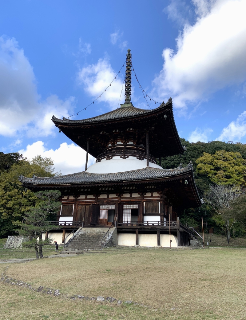 大伝法堂の隣に立っている大塔は、覚鑁が、同じ和歌山県の高野山に建てた大塔を再現した塔です。完成は天文16年(1547年)ととても古く、昭和27年に国宝に指定されています。