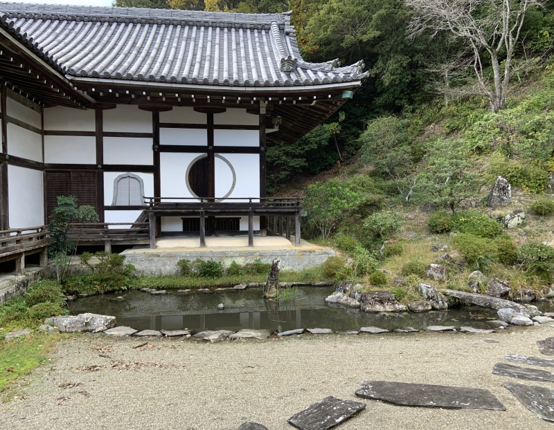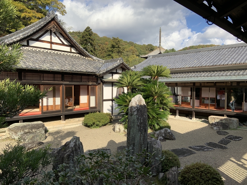 次に、本坊のほうを見ていきましょう。こちらでは、紀州徳川家の別邸を移築した名草御殿(なぐさごてん)から、根来寺庭園を鑑賞することができます。