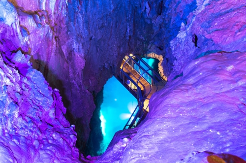 8つある地底湖のうち3つが公開されており、第3地底湖は水深98m、非公開の第4地底湖は水深120mと日本一の深さを誇ります。洞内の照明をLED化することにより、より幻想的な世界を演出しています。