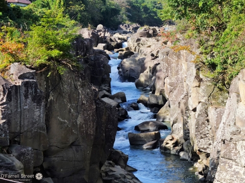 古くから景勝地として知られた厳美渓は、一関市を流れる磐井川の渓谷で、国の名勝及び天然記念物に指定されています。達谷の窟屋より、車で5分ほどです。エメラルドグリーンが美しい川の流れや、河原にそびえ立つ岩肌、長い年月をかけて削られた甌穴(ポットホール)、そして名物の「空飛ぶだんご」など、見どころの多い渓谷で、いつも多くの観光客でにぎわっています。