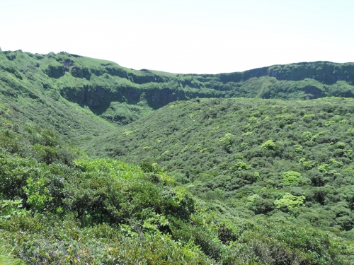 駐車場からは、1時間弱で噴火口があるお鉢巡り分岐点まで登る事ができます。分岐点からは、直径400m、深さ50mの噴火口を回る「お鉢巡り」を一周してみましょう。お鉢巡りの道中に、標高854.3mの山頂があります。