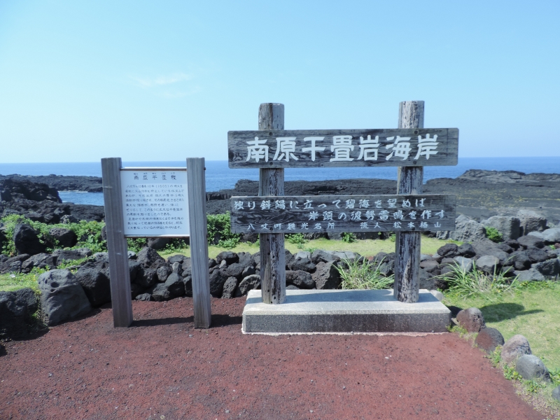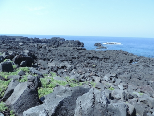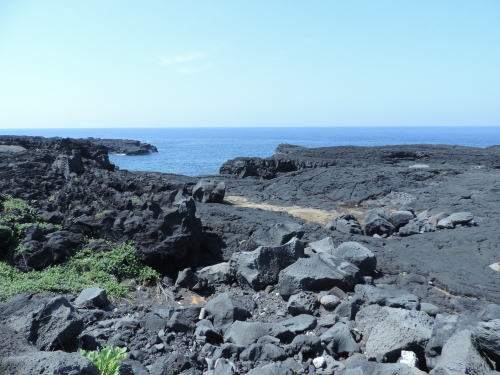八丈富士の噴火によって流れ出た溶岩でできた奇岩が続く景勝地です。玄武岩と呼ばれる黒々とした溶岩石が幅100m、長さ500mに渡って続いています。