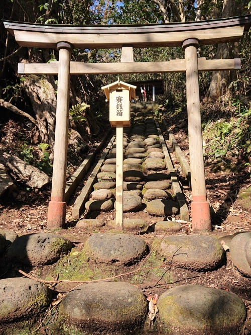 上記4枚の写真のように、これら3つの神社には大人がやっとくぐれるほどの小さな鳥居があり、その向こう側に丸い石段が長く続いていますが、この石段は人が上るものではありません。鳥居の手前で参拝しましょう。