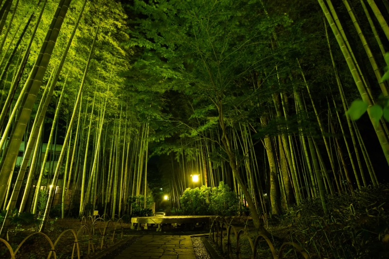 桂川に沿って整備された散歩道で、石畳沿いに竹林が生い茂る静かな小径です。距離は桂橋から滝下橋までの約300m。途中には竹製のベンチや、ギャラリーしゅぜんじ回廊などもあり、清流のせせらぎを聞きながらのんびり散歩を楽しめます