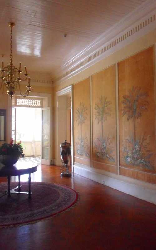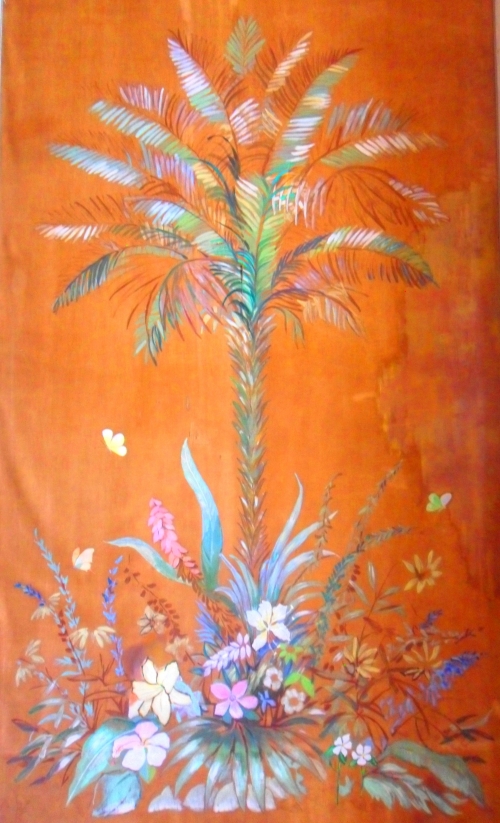 同じく一階のゲストを迎える部屋では、ヤシの木の絵画が。