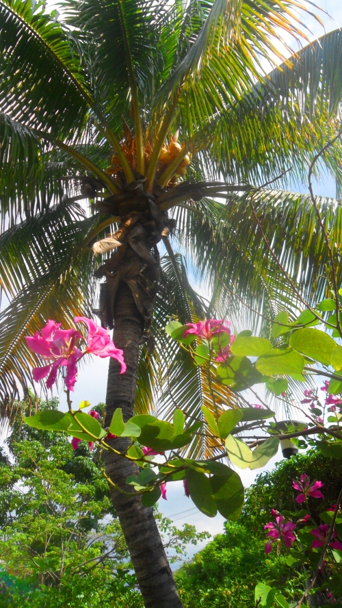 ヤシの木さえ、花々が彩ってとっても華やかです!