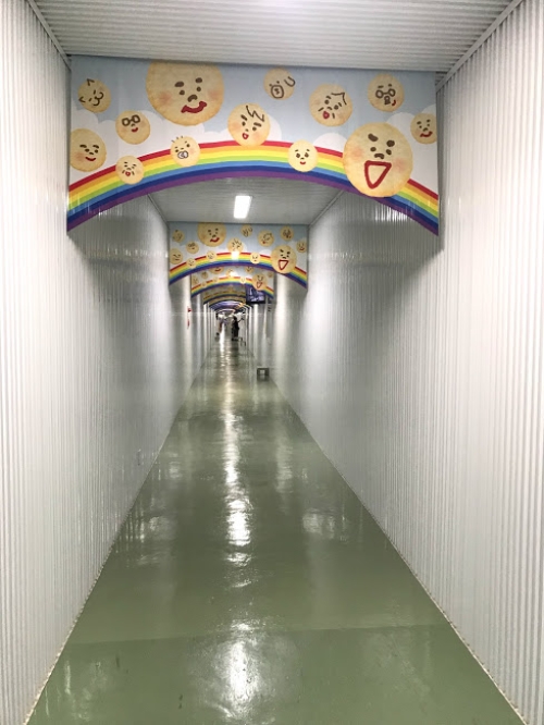 工場見学では大きな窓から製造過程を見学することができます。途中でできたての団子やおせんべいが試食できるのも楽しみのひとつ。また工場内にカフェとお土産品販売所も併設されているほか、おせんべい作りの体験も可能です。