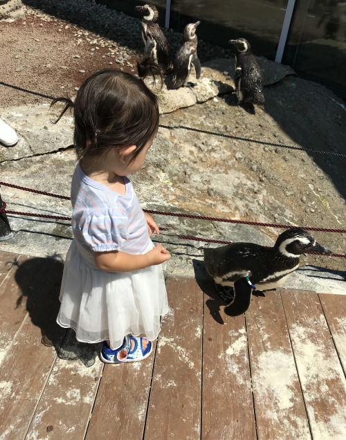特にペンギンとの距離が近いと評判で、ケープペンギンが手を伸ばせば触れるくらい近くに飼育されています(触ることはできません)。トングを使ってペンギンたちにエサやりができる「パクパクタイム」も人気です。