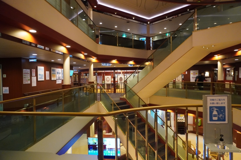 船内が広く、自由に散策できるのが魅力です。展望デッキや、ゲームコーナー、大浴場、マッサージチェアやキッズスペースなどの設備が充実しているので、移動の時間も自由に楽しむことができます。