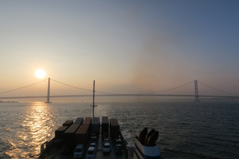 関西~九州の航路では、兵庫県神戸市垂水区東舞子町と淡路市岩屋を結ぶ明石海峡大橋、岡山県倉敷市と香川県坂出市を結ぶ瀬戸大橋、愛媛県今治市と大島を結ぶ来島海峡大橋の「絶景三大架橋」を間近で見ることができ、さらに橋の下をくぐるという普段はできない体験も楽しめます。