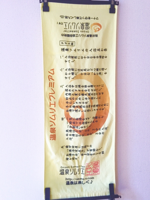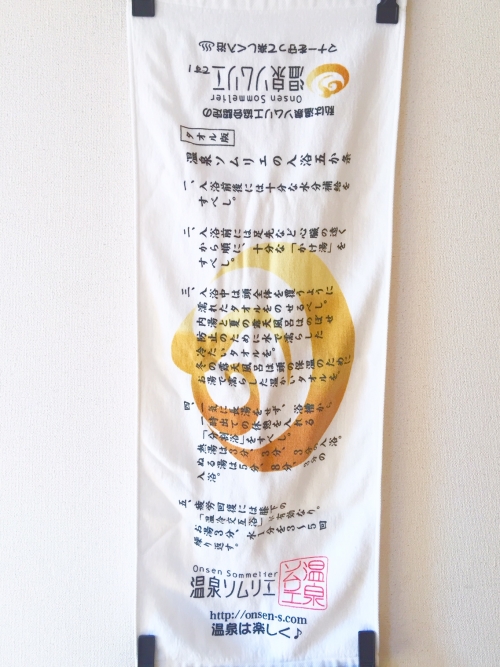 主に東京で開催されている温泉ソムリエ認定セミナーに参加すると、セミナー終了時に認定証と「温泉ソムリエの入浴5か条」が書かれた認定タオルを貰えます。