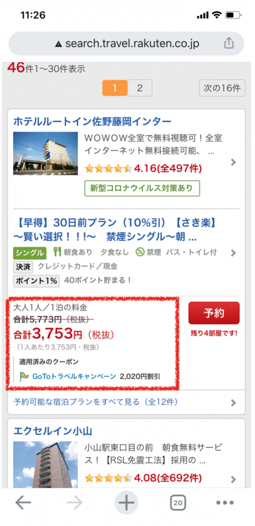 楽天トラベルでの対象の宿の見分け方&割引額の確認方法は?