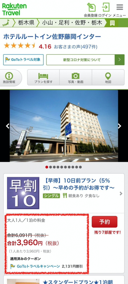 楽天トラベルで割引された金額で宿を予約する方法は?