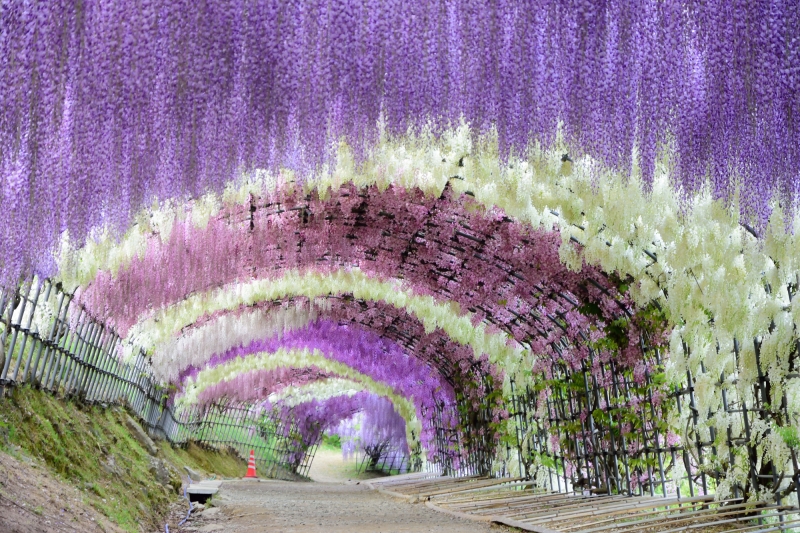 そのほかドーム型の藤棚や、約1,000坪もの大藤棚など、さまざまな藤の絶景が楽しめます。