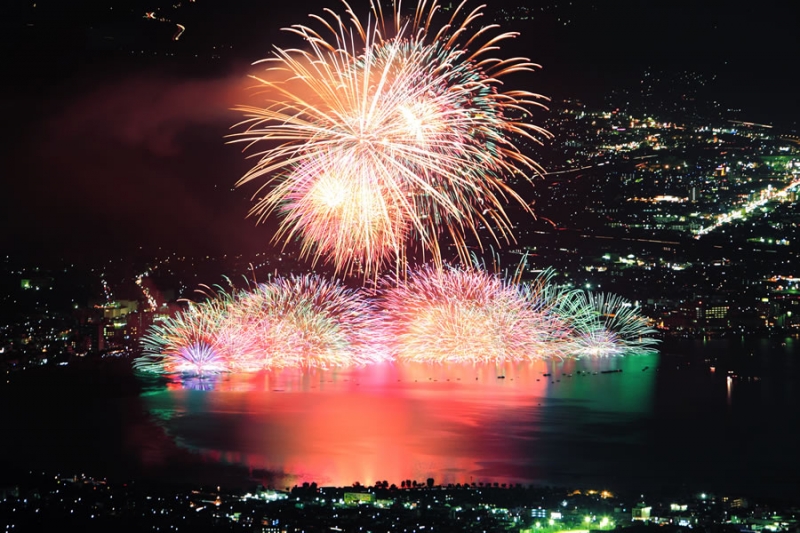打ち上げ数は約40,000発!毎年8月15日に長野県諏訪市で開催される、花火の打ち上げ数ランキング日本一の花火大会です。