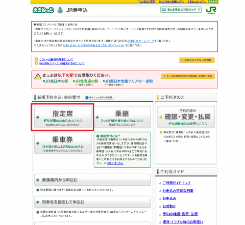 出典:www.eki-net.com「指定席」をクリック(公式サイトのスクリーンショット)