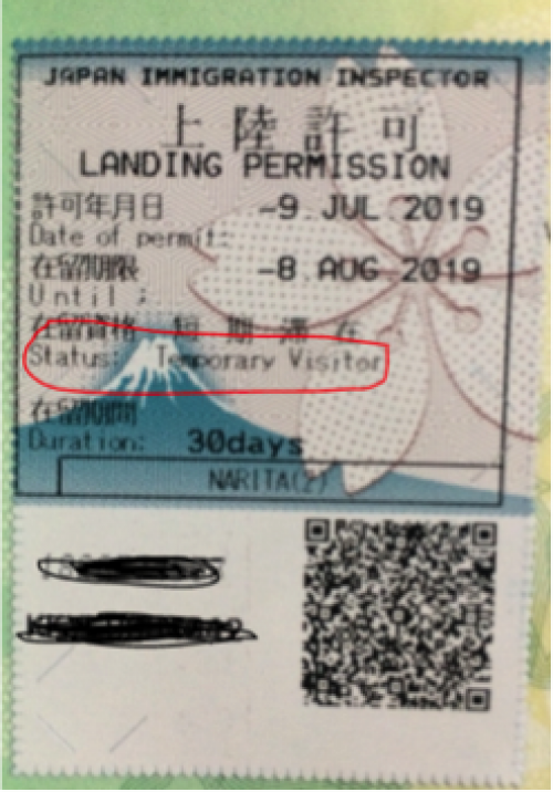 日本に旅行で訪れる外国人観光客は、「短期滞在」の在留資格によって、観光目的で15日〜90日間の滞在が許可されます。日本の空港に到着し、観光目的での滞在を希望すると、入国管理官がパスポートに一時訪問者として短期滞在の「スタンプ/シール」を押します。