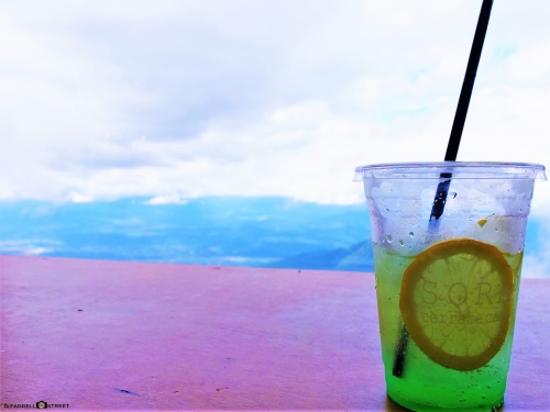 ウッドデッキのテラスから階段を登るとカフェやショップスペースがあり、インスタ映えするメニューも。人気の「雲海パイ包みスープ」や、女子が喜びそうな綺麗な色合いの「スカイソーダ」、雲をイメージしたふわふわの雲海マシュマロを浮かべるSORA珈琲など、雲海にちなんだメニューがいただけますよ。