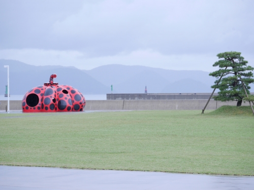 「黄かぼちゃ」とはまた別の場所、直島のフェリー乗り場近くには、「赤かぼちゃ」もあります。こちらは中に入ることもできますよ。