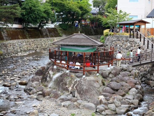 また独鈷の湯の近くにも「河原湯」という足湯があり、桂川のせせらぎを聞きながらゆっくり癒やされたいですね。