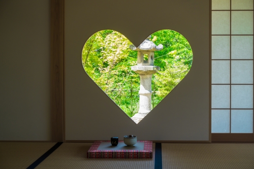 また正寿院は客殿にあるハート型の窓が可愛いとSNSで広まり話題となっています。ハートの窓だけでなく天井に描かれている”花天井画”も可愛いと、女性を中心に人気です。
