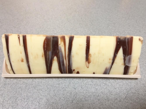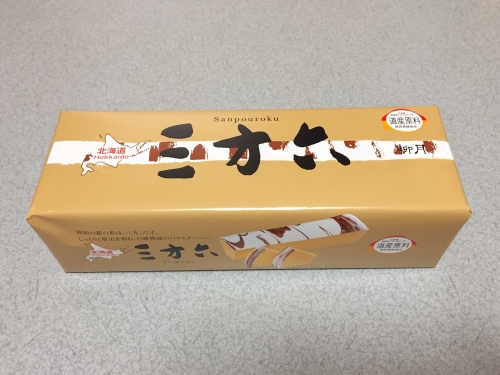 三方六は北海道の銘菓で、「柳月(りゅうげつ)」が手掛けるバームクーヘン(1本・10切れで680円:税込)です。小麦やてん菜、卵、生乳は、地元・北海道産のものを使っており、こだわりを感じます。バームクーヘンの外側は、ホワイトチョコレートとミルクチョコレートでコーティングされています。甘さ控えめで食べやすく、しっとりとした生地が特徴です。