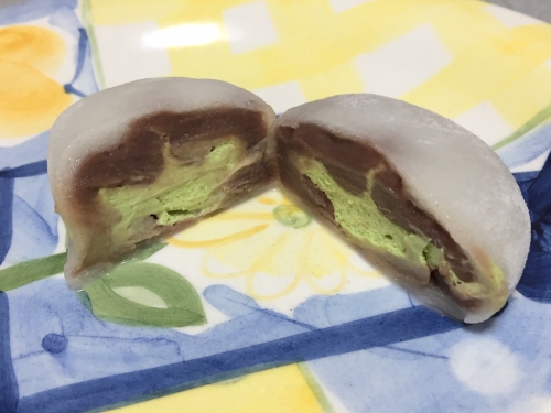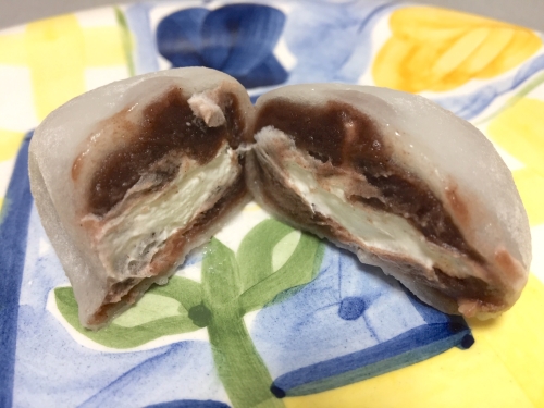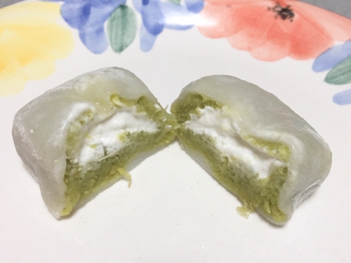 中心部に生クリーム、その周りをこし餡(またはずんだ餡)、そして一番外側はお餅の順で包んであります。お餅には宮城県産の「みやこがね」という品種のもち米を使用。その他、北海道産の生クリームや十勝産の小豆、京都宇治産の抹茶やほうじ茶の茶葉、山形県鶴岡産のだだちゃ豆、といった具合に、素材にもこだわっているスイーツです。