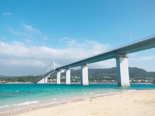 人気アイドルグループ・嵐が出演するCMのロケ地として使われた「ハートロック」があることから、一気に人気に火がついた島。沖縄本島北部に位置し、離島でありながら古宇利大橋を渡って車で気軽に行くことができます。