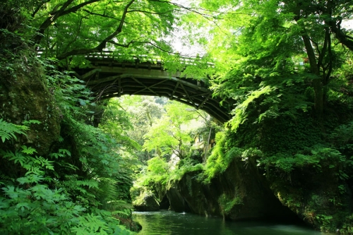 4月1日〜10月31日のあいだ、あやとり橋近くの鶴仙渓遊歩道沿いに「川床」も出現。水の流れる音や鳥のさえずりに耳をかたむけながら、深い緑に囲まれて癒しのひとときを過ごせます(席利用は有料)。