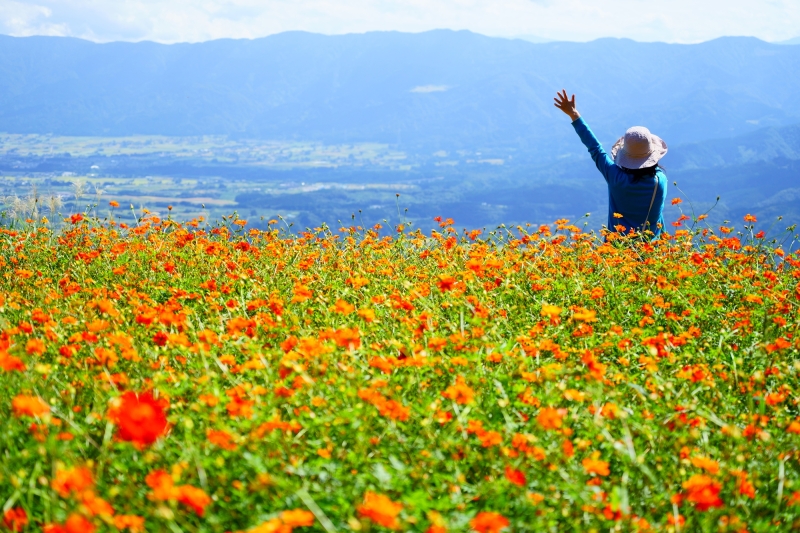 また9月下旬〜10月下旬には、約1,000本のコスモスが咲き乱れます。九重連山や阿蘇山を見渡す景色も素晴らしい、穴場的なスポットです。