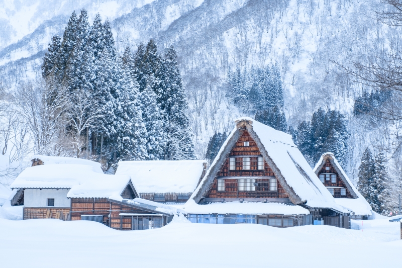 例年1月末〜2月頭にかけて「雪灯廊」と題したライトアップイベントが開催。かやぶき民家が温かい光で照らし出され、幻想的な景色を見せてくれます。初日と最終日にあげられる冬の花火も必見です。