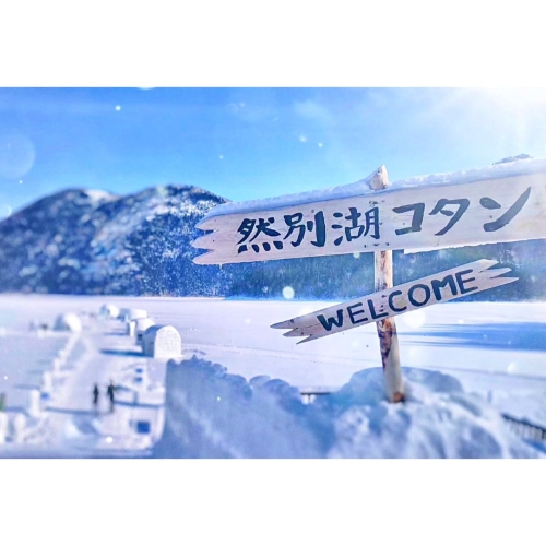 然別湖は冬の凍結が最も早く、約半年間は雪と氷に覆われます。完全に凍った湖は一面が真っ白な世界。なんとその冬の期間の約60日間だけ、凍結した湖上に幻の村「しかりべつ湖コタン」が現れます。