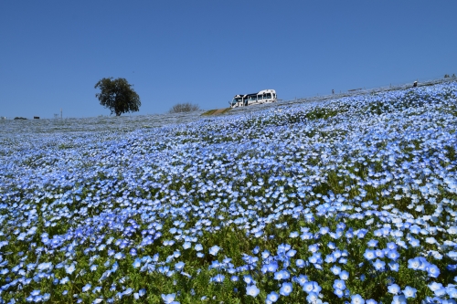 ネモフィラが咲くのは4月下旬〜5月中旬にかけて。ひたちなか市内で一番標高の高い「みはらしの丘」辺り一面が、美しい青色で彩られます。そのほかにも園内はチューリップなど春の花で彩られ、ぜひ女子旅で行きたいスポットです。