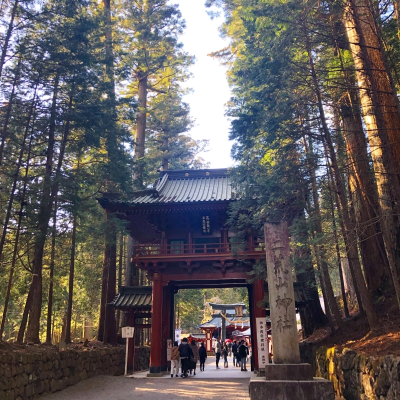 世界遺産「日光の社寺」を構成する資産のひとつ。日光信仰の始まりとなった古社で、男体山の神と女峰山の神をまつる二荒山信仰の本社です。縁結びや開運のパワースポットとしても人気があり、境内には「縁結びの御神木」や「縁結びの笹」のほか、親子杉、夫婦杉と、縁にまつわる見どころが豊富です。