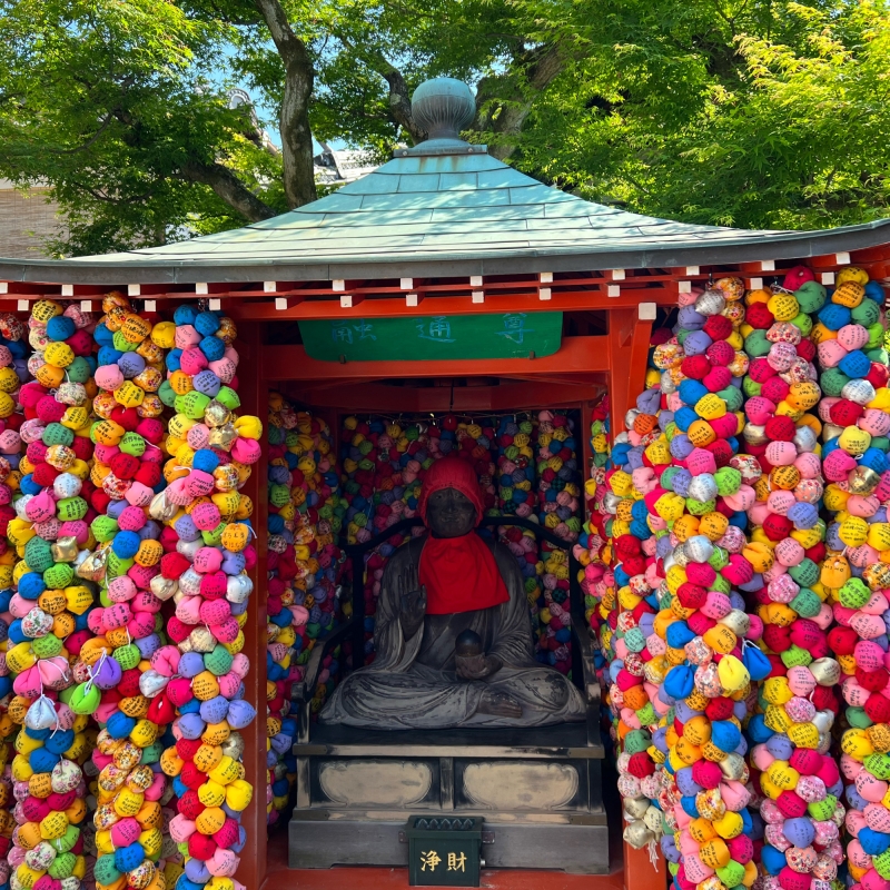 八坂の塔近くにある八坂庚申堂は正式名称を「金剛寺」と言い、インスタ映えスポットとして女性に人気を集めています。境内を彩るカラフルで可愛い丸いものの正体は、「くくり猿」と呼ばれるお守り。ひとつ欲望を我慢することで願いを叶えてくれると言われています。ひとつひとつ手作りされており、平日は100個、週末は300個と授与数が限られているため、早めに参拝するのがポイントです。
