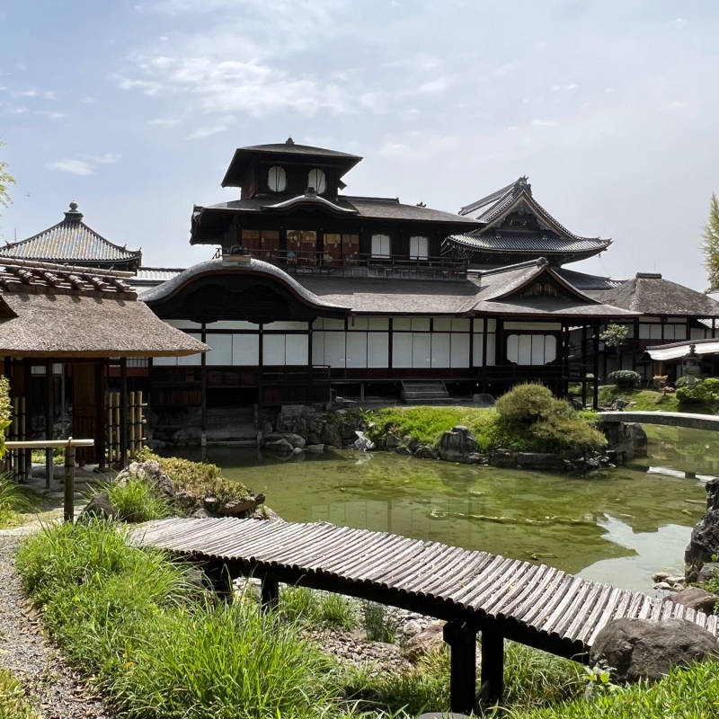 1606年に、豊臣秀吉の妻・北政所(ねね)が秀吉の菩提を弔うために創建しました。東山を借景とした池泉回遊式の「高台寺庭園」は、1927年に国の史跡・名勝に指定。そして開山堂と書院をむすぶ廊下の中央にある「観月台」は国の重要文化財に指定されており、北政所(ねね)が秀吉を偲びながら月を眺めたと言われています。