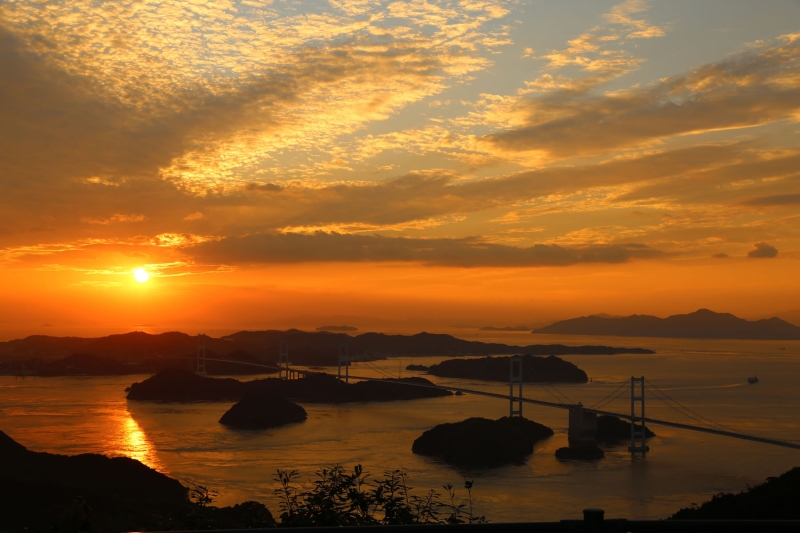 トリップアドバイザーによる『行ってよかった!日本の展望スポット2016』で3位に選ばれた展望スポット。標高307.8mの亀老山山頂にあり、展望台からは世界初の3連吊橋「来島海峡大橋」や、日本三大急潮のひとつ「来島海峡」の潮流、そして晴れた日には西日本最高峰「石鎚山」を見渡すことができます。