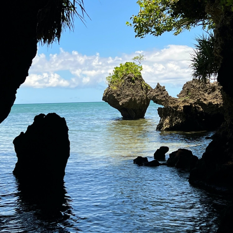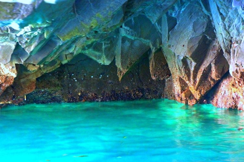 やはり見どころは、鍾乳洞を進んでいった奥に広がる、エメラルドグリーンの海!海までは片道10分ほどで辿り着くことができます。